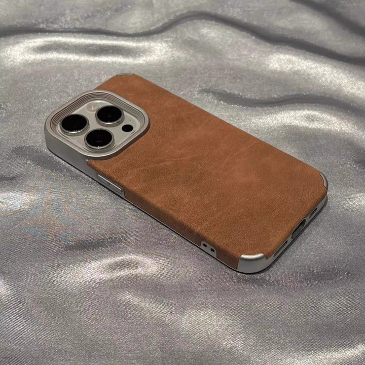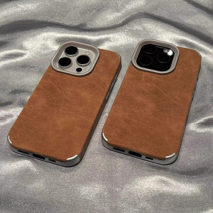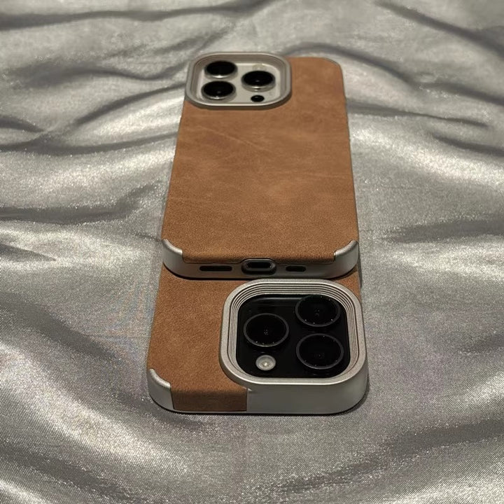 Retro leather Apple phone case suitable for new electroplating high-grade suede protective cover