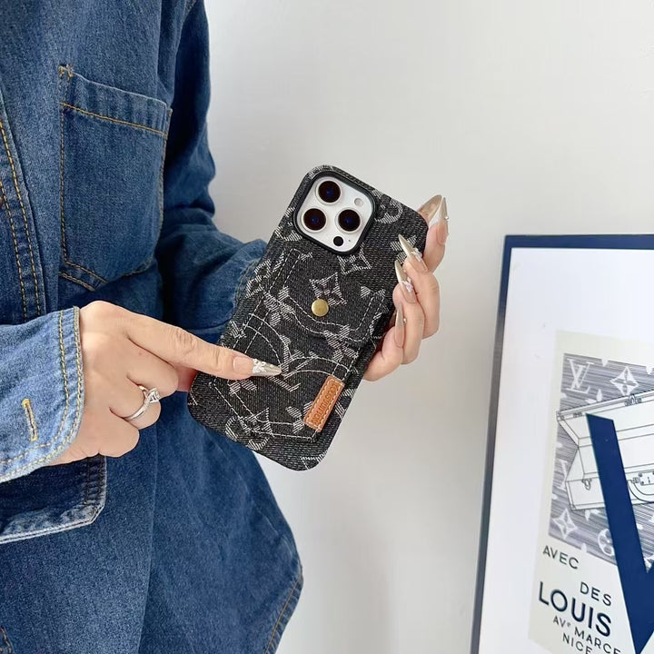 Apple phone case casual denim pocket card holder, all-inclusive soft case