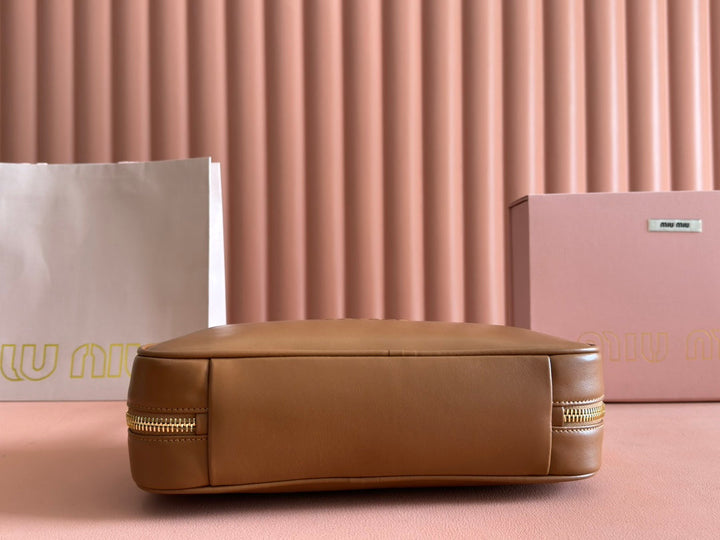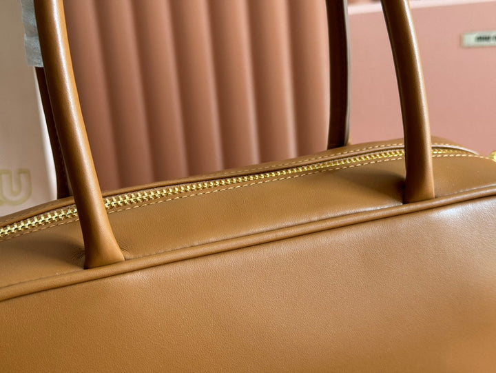 BEAU TOP HANDLE BAG 29 IN TAWNY BROWN GLOSSY CALFSKIN