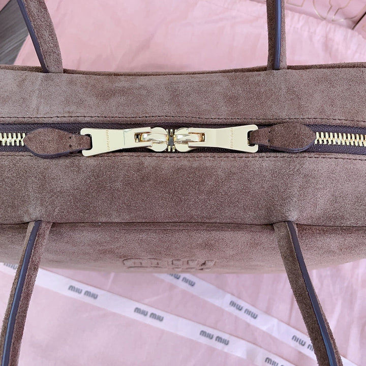 BEAU TOP HANDLE BAG 34 IN BROWN SUEDE