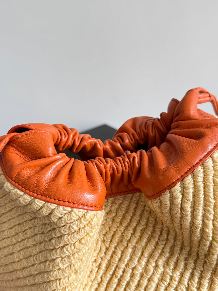 BOTTEGA VENETA 25S DUSTBAG 32 IN BURNT ORANGE RAFFIA AND CALFSKIN