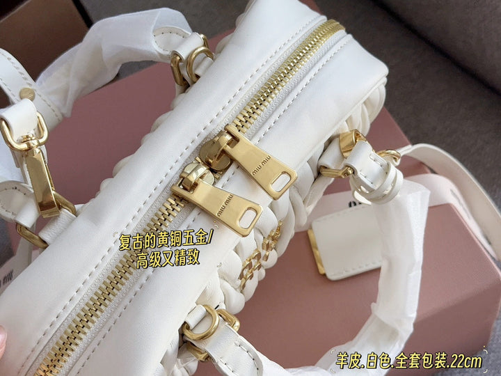 BOWLING BAG 22 IN WHITE LAMBSKIN