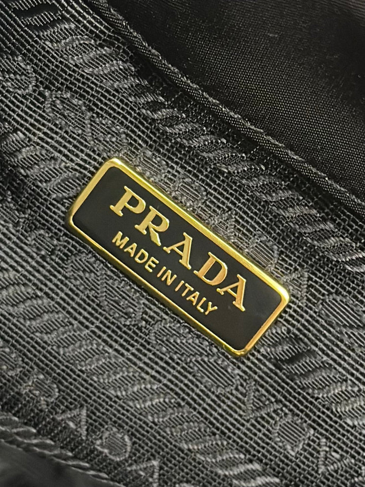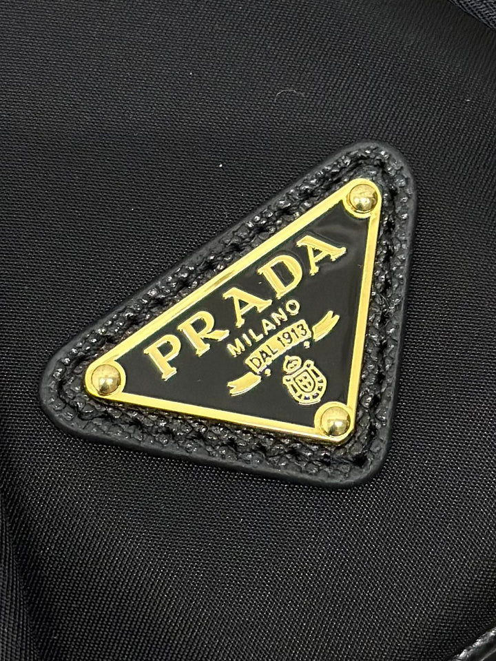 BUCKET BAG 19 IN BLACK RE-NYLON AND CALFSKIN HANDLE