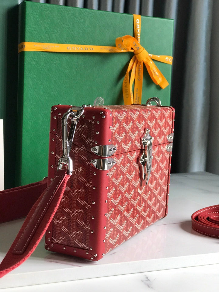 CASSETTE TRUNK BAG 21 IN BURGUNDY RED GOYARDINE CANVAS & CLAMECY COWHIDE