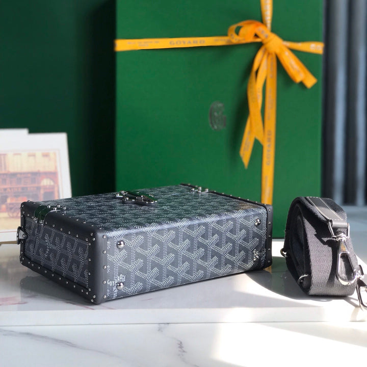 CASSETTE TRUNK BAG 21 IN GREY GOYARDINE CANVAS & CLAMECY COWHIDE