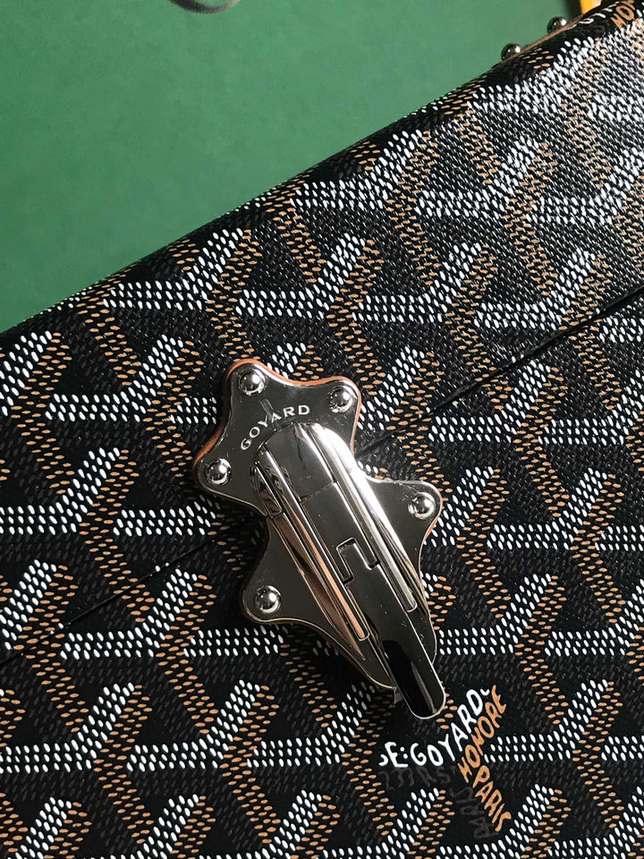CASSETTE TRUNK BAG 21 IN TAN BROWN GOYARDINE CANVAS & CLAMECY COWHIDE