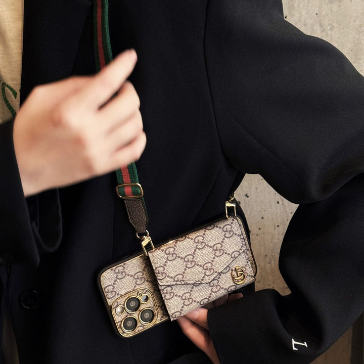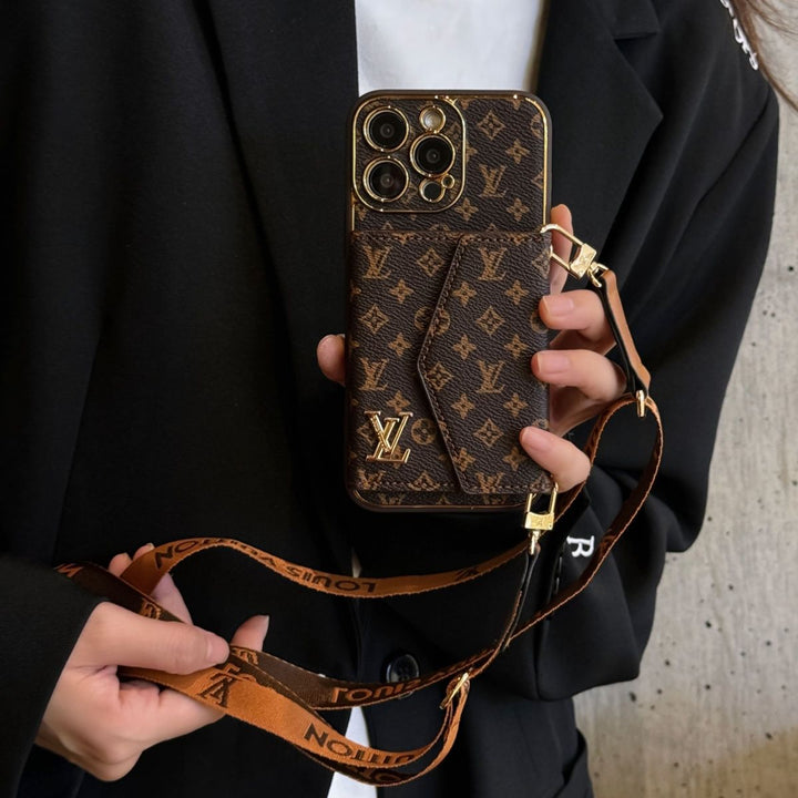 Advanced leather iPhone Case With Wallet And Strap Brown
