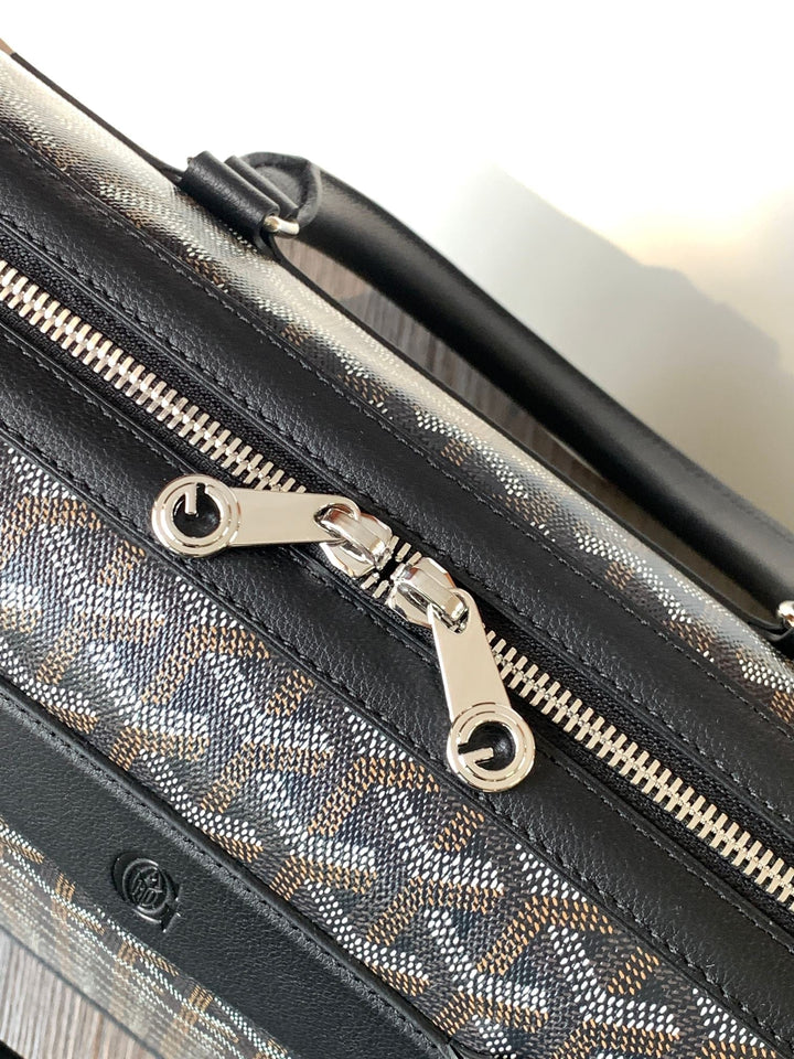 CISALPIN DOCUMENT CASE 39 IN BLACK GOYARDINE CANVAS AND CALFSKIN