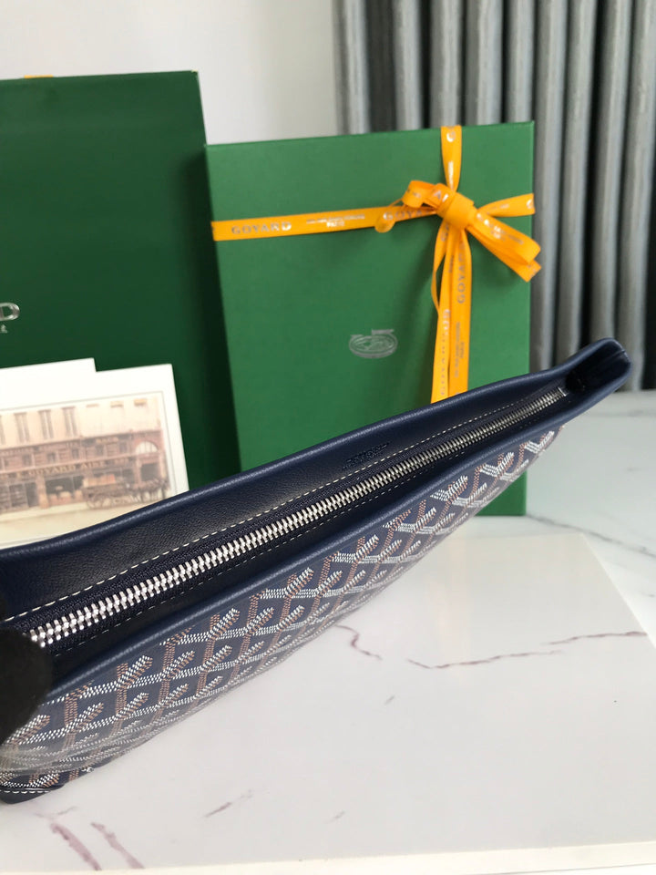 CONTI POUCH 24 IN NAVY BLUE LAMBSKIN AND GOYARDINE CANVAS
