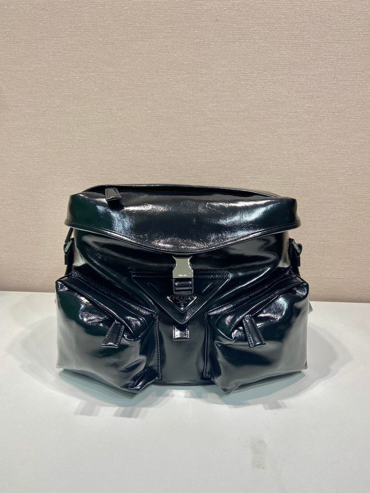 CROSSBODY BAG 29 IN BLACK OIL WAX LAMBSKIN