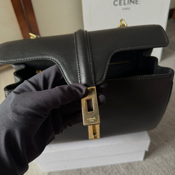 FLAP SHOULDER BAG 23 IN BLACK LAMBSKIN GOLD HARDWARE