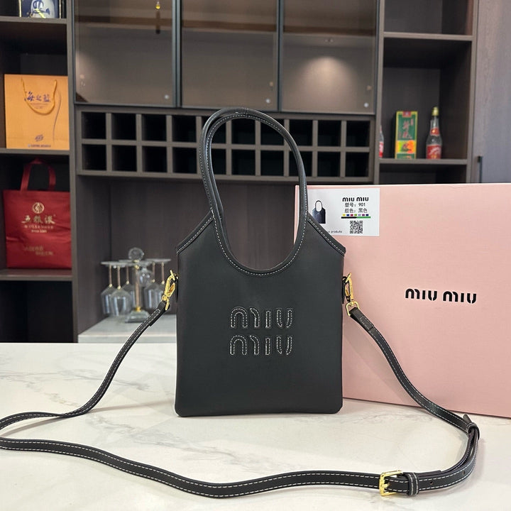 IVY MINI TOTE BAG 20 IN BLACK CALFSKIN