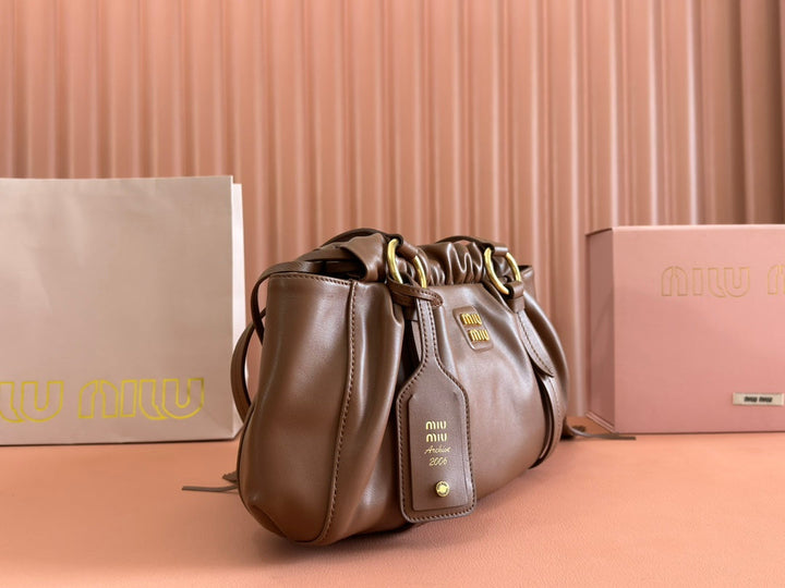 JOIE HAND BAG 32 IN BRUNETTE BROWN SHINY LAMBSKIN