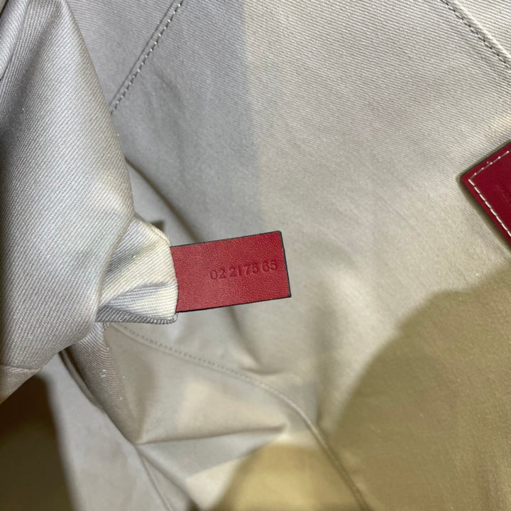 LAGRE WOODY TOTE BAG 45 IN BEIGE LINEN CANVAS BLACK WEBBING LOGO EMBROIDER RED CALFSKIN