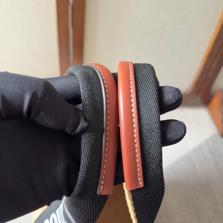 LAGRE WOODY TOTE BAG 48 IN NATURAL FIBERS BLACK WEBBING LOGO EMBROIDER BROWN CALFSKIN