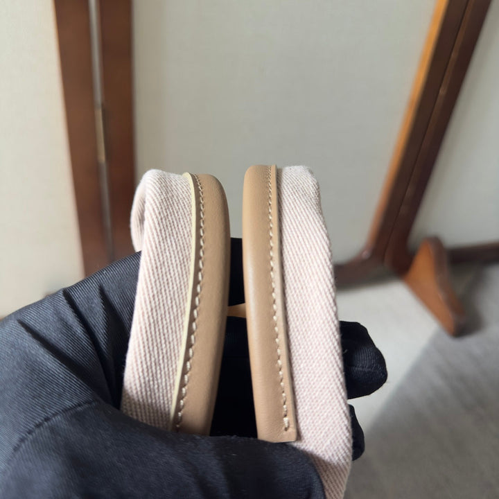 LAGRE WOODY TOTE BAG 48 IN NATURAL FIBERS BLUSHY BEIGE WEBBING LOGO EMBROIDER BROWN CALFSKIN