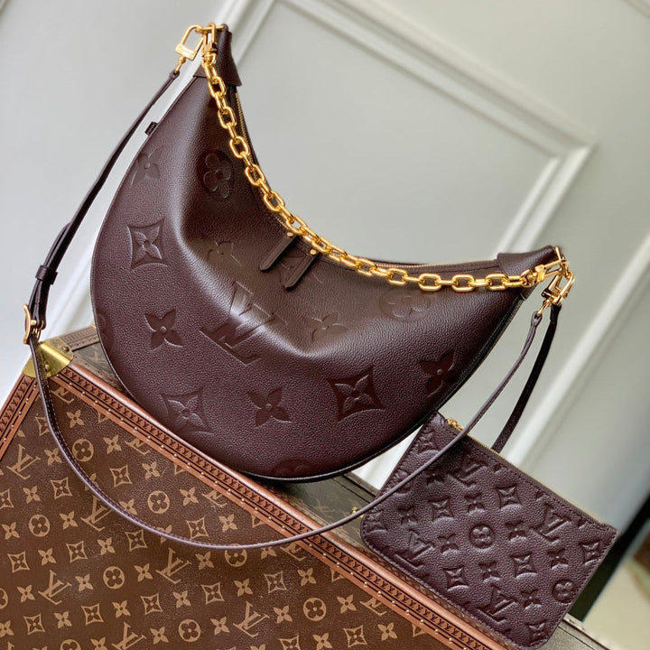 LOOP HOBO 38 IN DARK BROWN MONOGRAM EMPREINTE CALFSKIN EMBOSSED LOGO