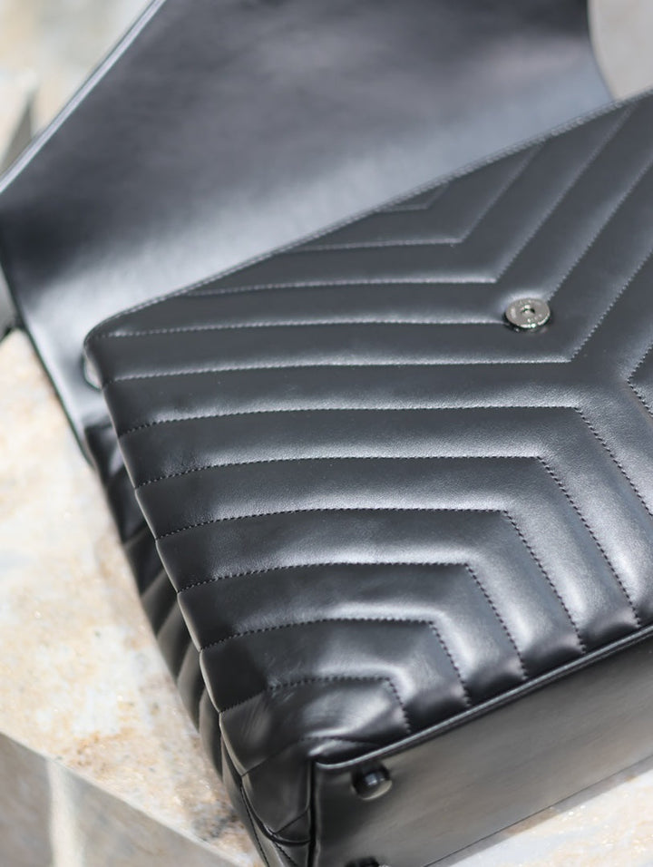 LOULOU LARGE 36 IN BLACK QUILTED CALFSKIN BLACK HARDWARE