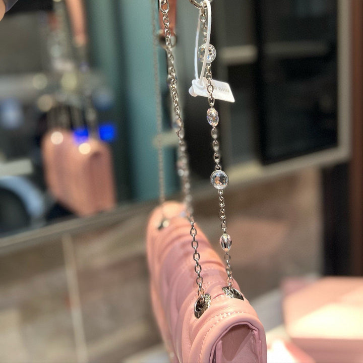 MATELASSÉ CRYSTAL CHAIN BAG 21 IN BABY PINK LAMBSKIN
