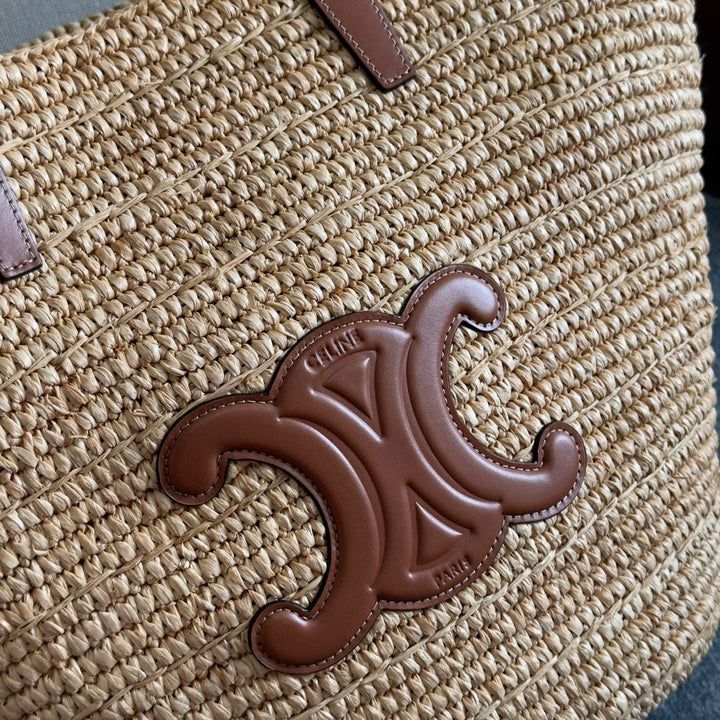 MEDIUM SUPPLE CELINE CLASSIC PANIER IN RAFFIA AND CALFSKIN