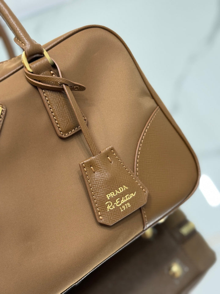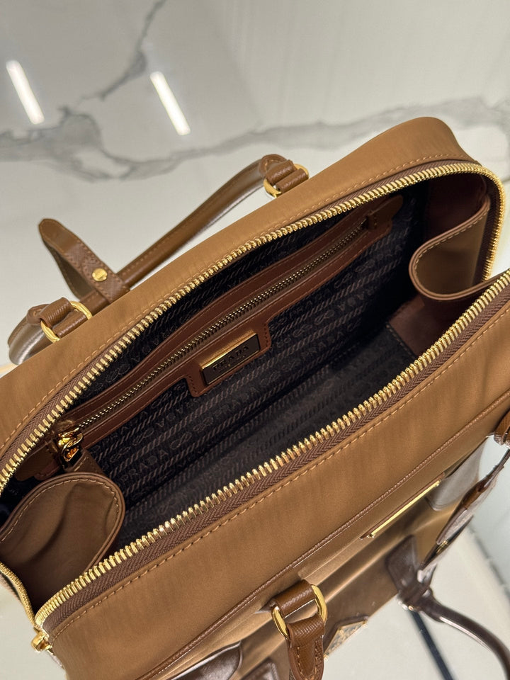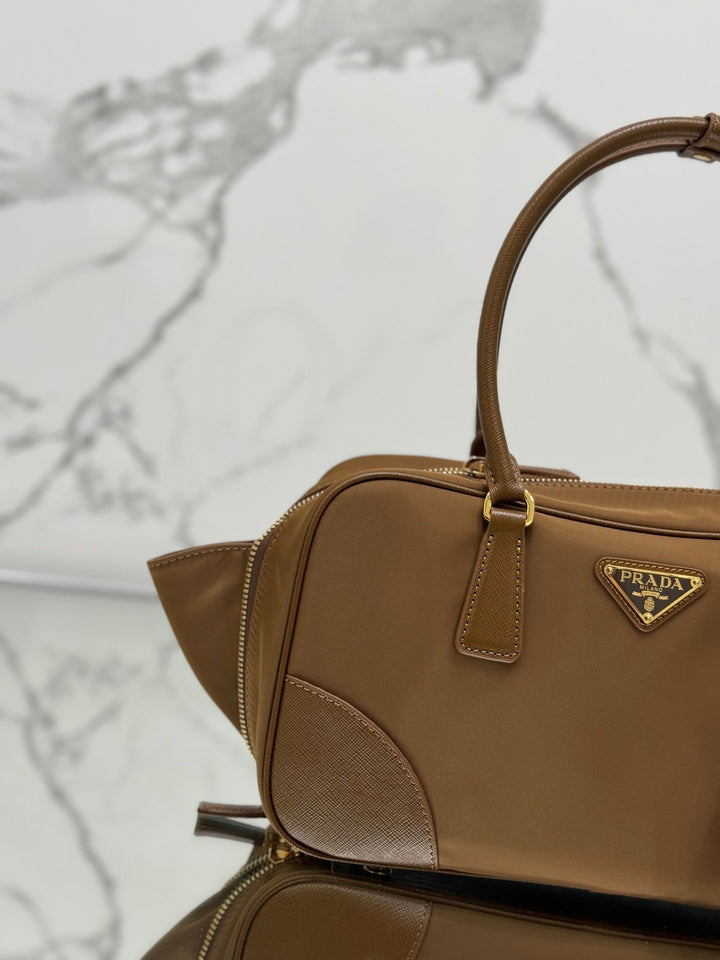 MEDIUM TOP HANDLE BAG 30 IN CHERRY WOOD NYLON AND CALFSKIN TRIM