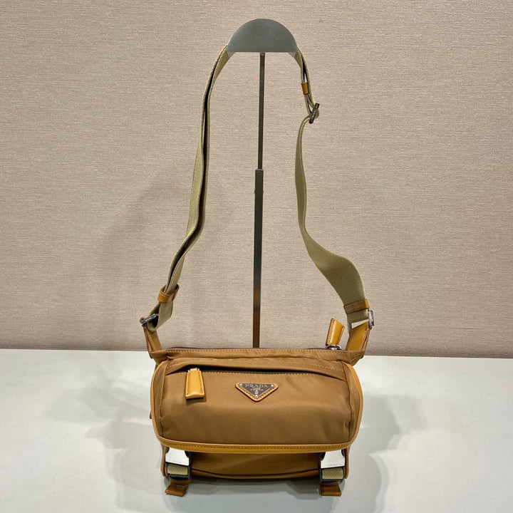MESSENGER BAG 20 IN CIDER BROWN RE-NYLON AND CALFSKIN TRIM