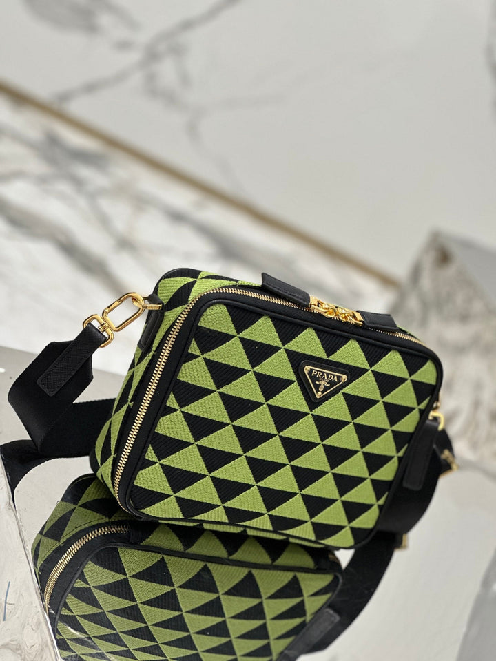 MESSENGER BAG 22 IN OCADO GREEN AND BLACK EMBROIDERED FABRIC GOLD HARDWARE