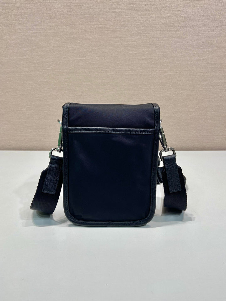 PHONE BAG 19 IN BLACK RE-NYLON AND SAFFIANO LEATHER TRIM
