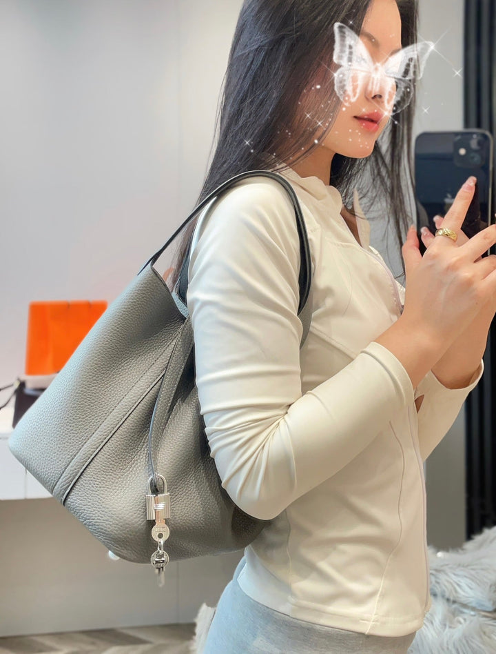 PICOTIN LOCK 22 IN GREY ETAIN CALFSKIN SILVER HARDWARE