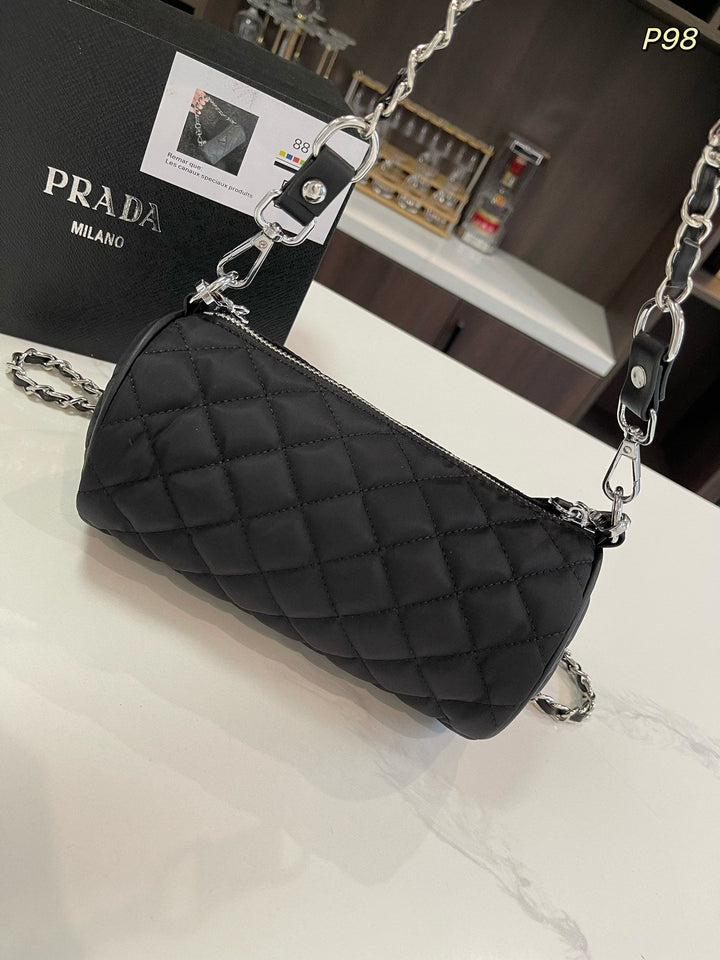 PRA CYLINDRICAL 20 BAG IN BLACK RE-NYLON SILVER HARDWARE