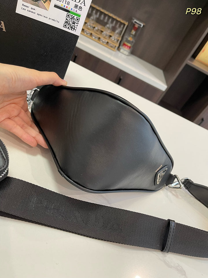 PRA TRIANGLE 27 SHOULDER BAG IN BLACK CALFSKIN WITH STRAP