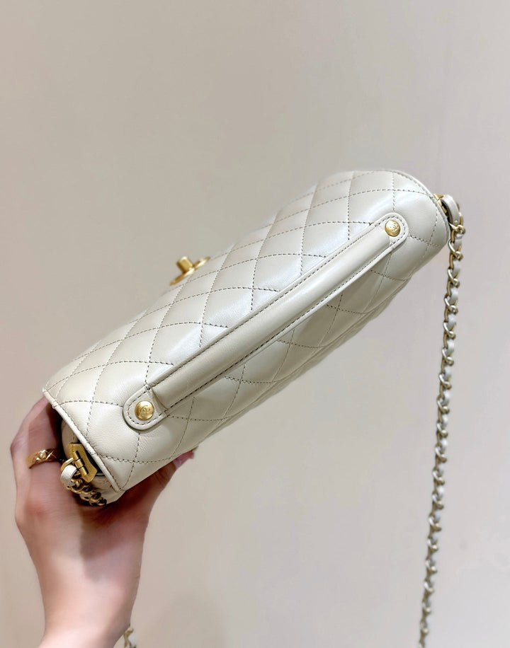 QUILTED FLAP BAG WITH HANDLE 26 IN BEIGE LAMBSKIN GOLD PLATED METAL