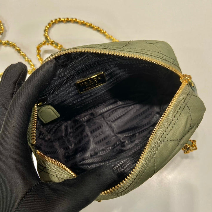 QUILTED HOBO BAG 19 IN PICKLE GREEN HANDMADE NYLON GOLD HARDWARE