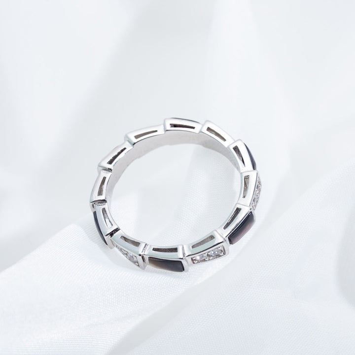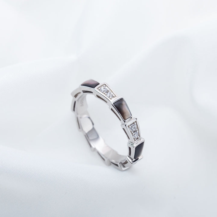 ˇFashion StreetˇSERPENTI RING SILVER DIAMOND BLACK MOP 3MM