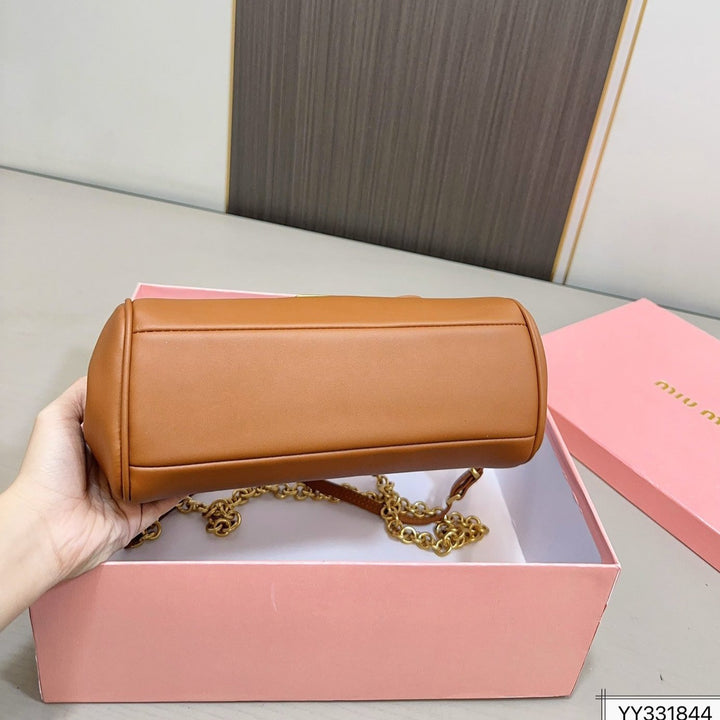 SHOULDER BAG 25 IN BRONZE BROWN CALFSKIN GOLD HARDWARE
