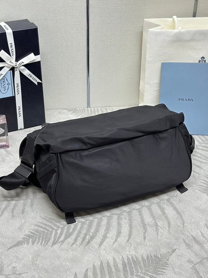 SHOULDER BAG 32 IN BLACK RE-NYLON TRIANGLE LOGO