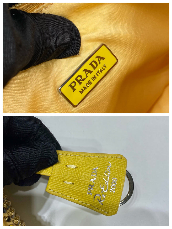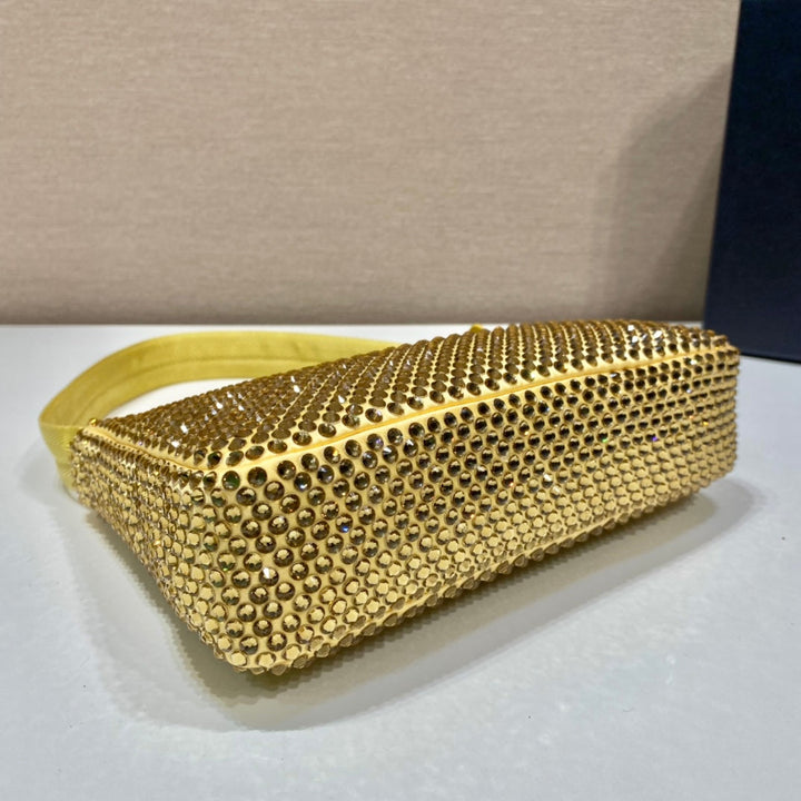 SPARKLING HOBO BAG 23 IN YELLOW NYLON ATTACHED FULLY CRYSTALS