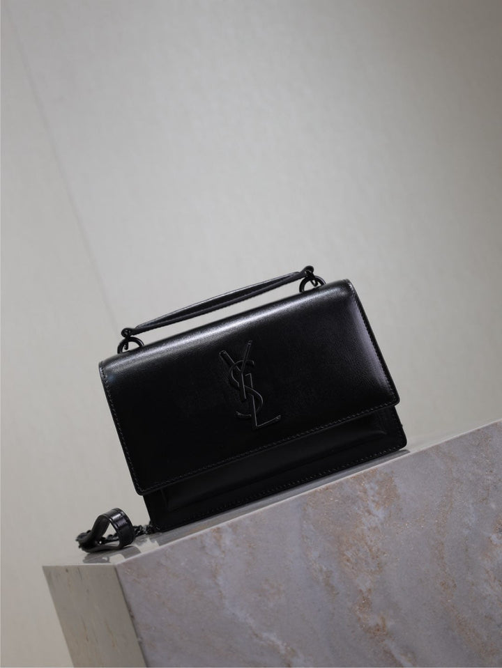 SUNSET SMALL BAG 19 IN BLACK CALFSKIN BLACK HARDWARE