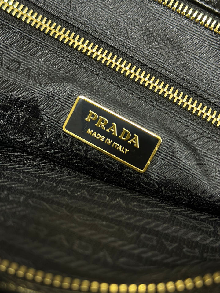 TOTE BAG WITH BELT 42 IN BLACK OIL WAX LAMBSKIN GOLD HARDWARE