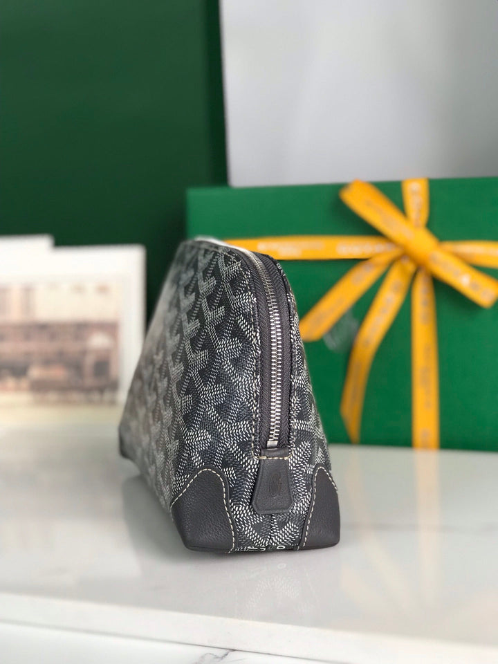 VENDÔME COSMETIC POUCH 17 IN GREY BLACK GOYARDINE CANVAS AND CALFSKIN TRIM