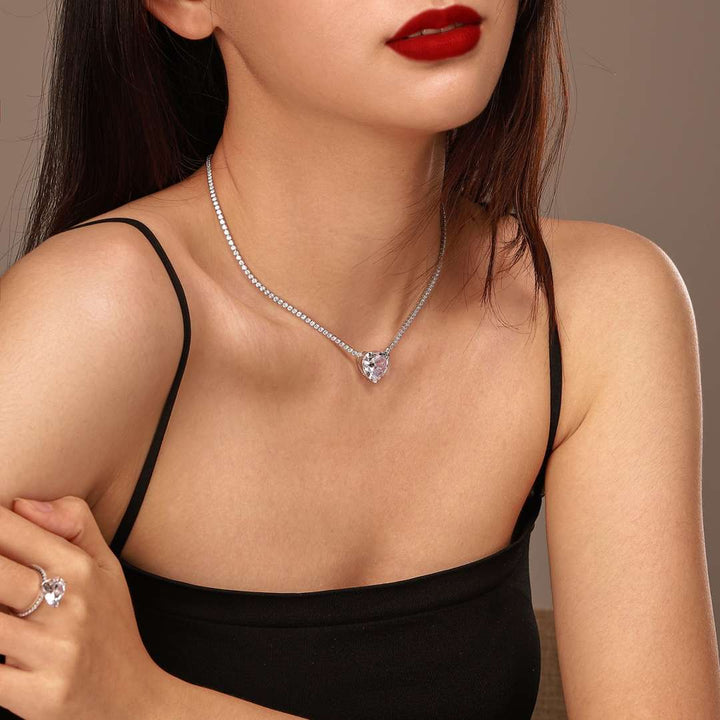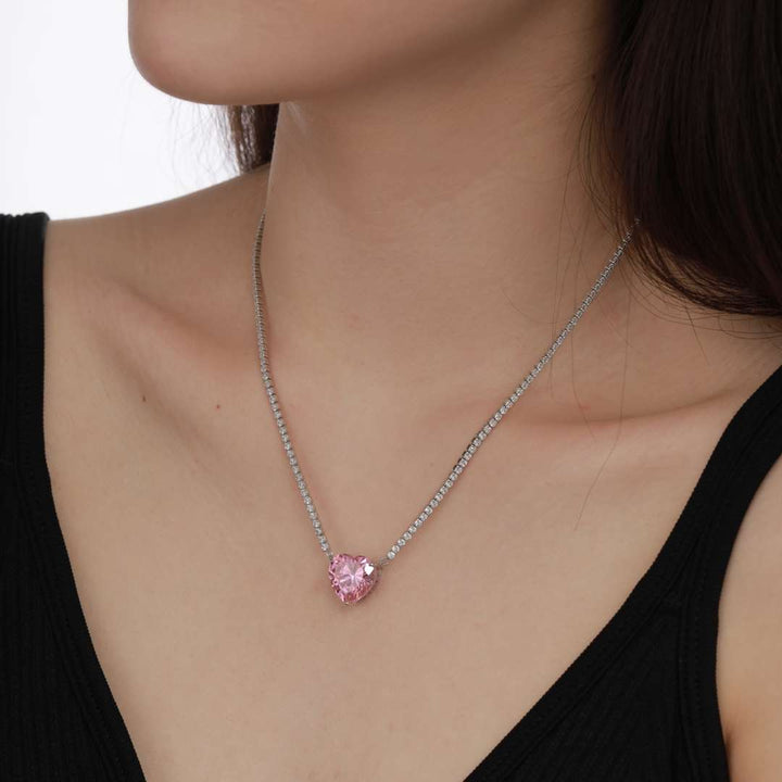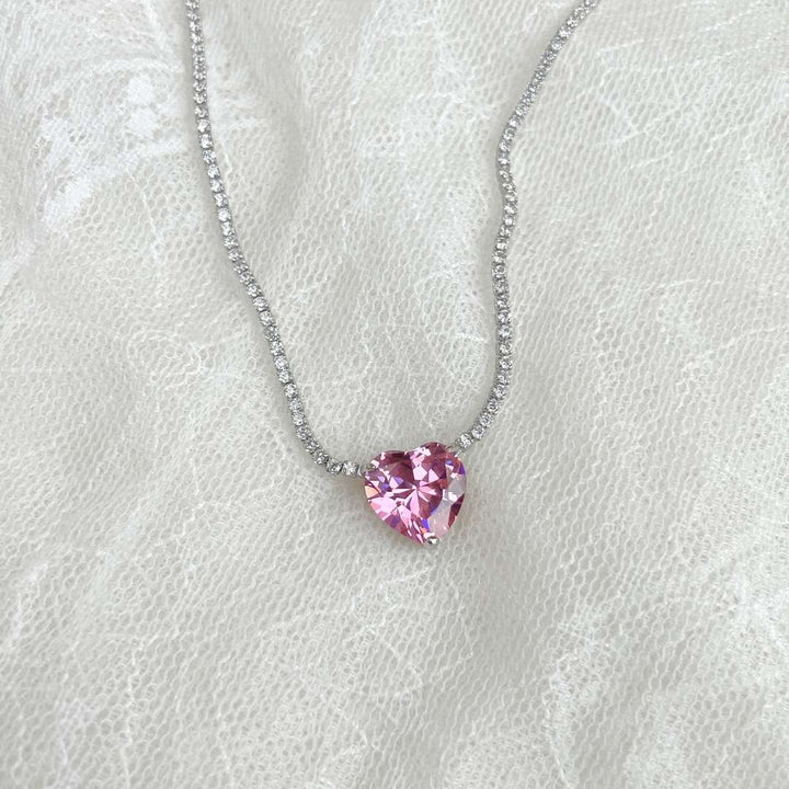 ˇFashion StreetˇVersatile Colorful Sweet Heart-Shaped Tennis Necklace