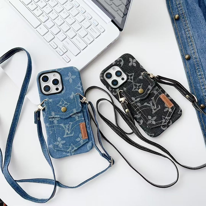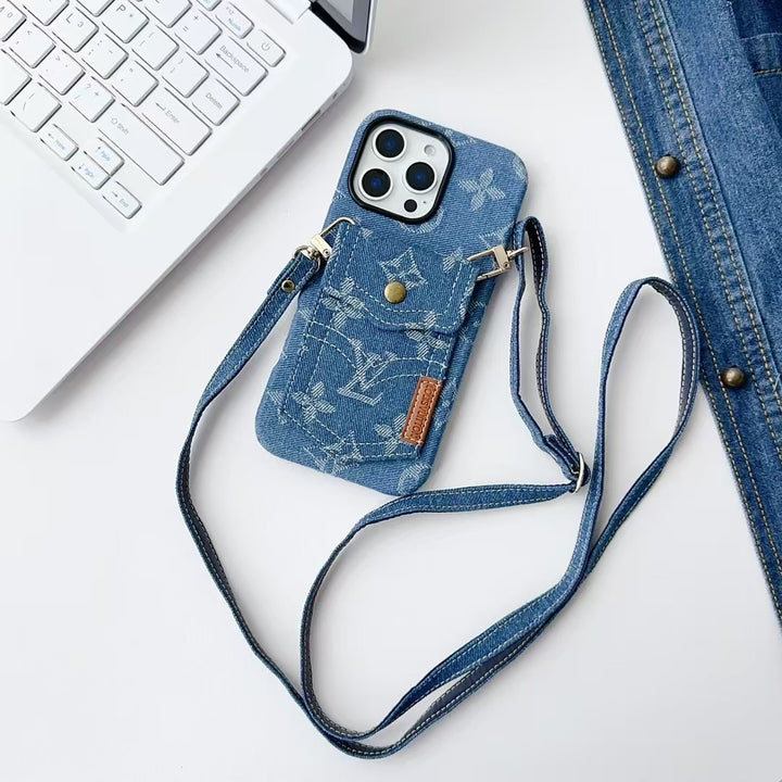 Apple phone case casual denim pocket card holder, all-inclusive soft case