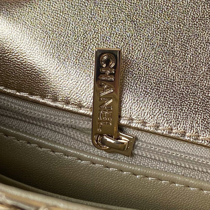 CC MINI 19 FLAP BAG IN GOLDEN METALLIC CALFSKIN WITH STRAP