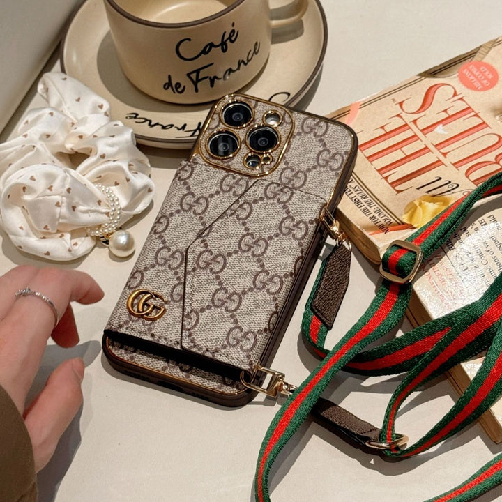 Advanced leather iPhone Case With Wallet And Strap Brown