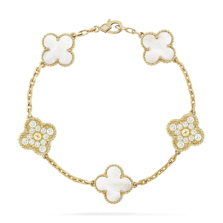 White Mother-of-Pearl Five-Flower Bracelet - Wealth Attraction