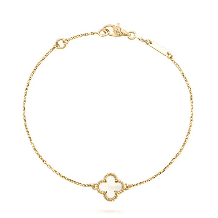 Four-leaf clover bracelets symbolize luck and good fortune. Each leaf represents different meanings such as love, health, wealth, and happiness. Four-leaf clover bracelets are considered a talisman, symbolizing good luck and auspiciousness. They have become a classic style and enjoy widespread attention and popularity. They bring blessings and auspiciousness to the wearer.