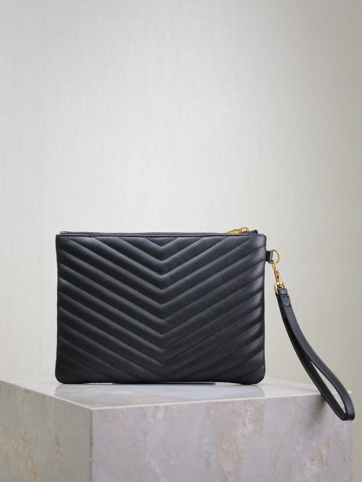 CLUTCH 24 IN BLACK QUILTED CALFSKIN GOLD BUCKLE
