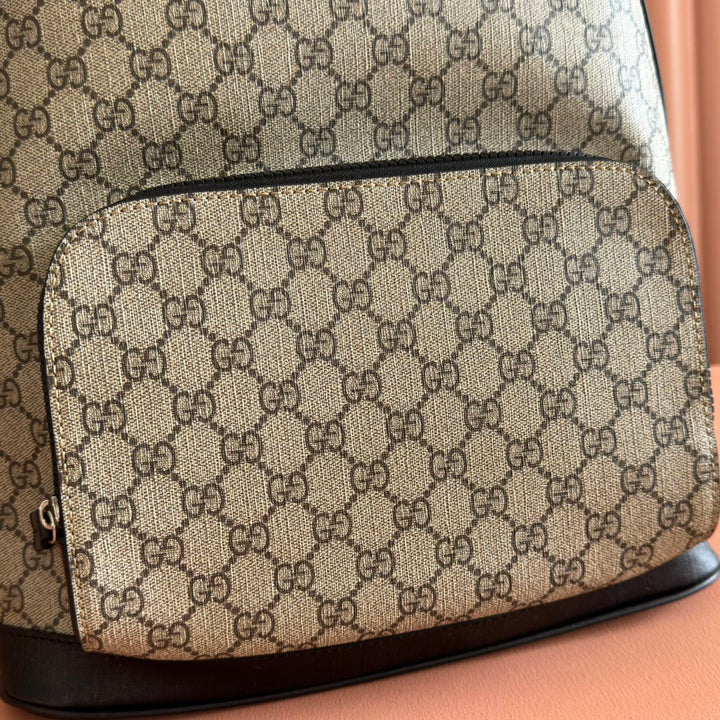 EMBOSSED BACKPACK 40 IN BEIGE AND DARK BROWN CALFSKIN