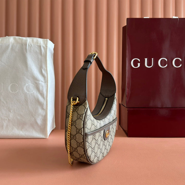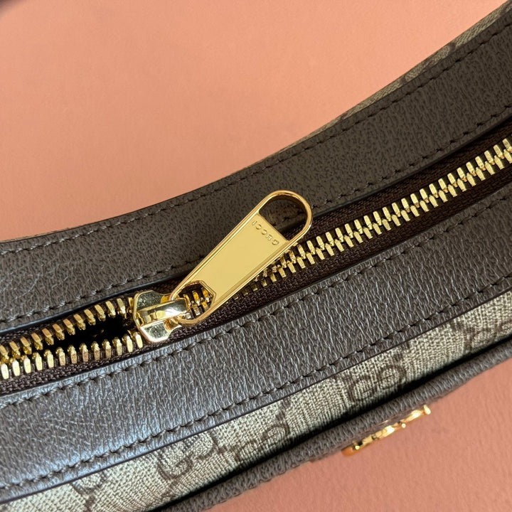 GG SUPREME SHOULDER BAG 20 BROWN IN CANVAS LOGO GOLD HARDWARE
