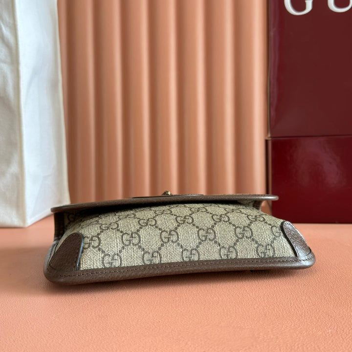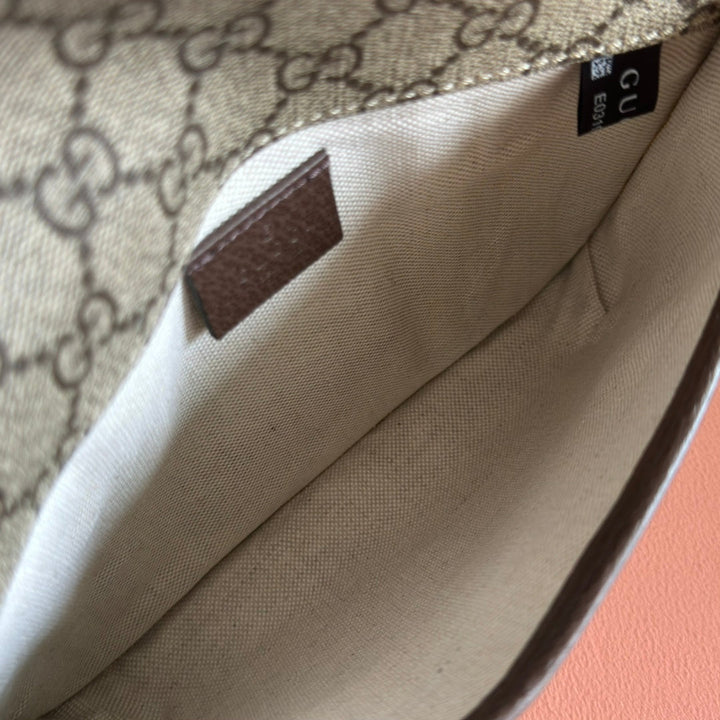 GUCCI NEO VINTAGE TIGER HEAD CROSSBODY BAG 20 IN CANVAS BROWN LEATHER TRIM